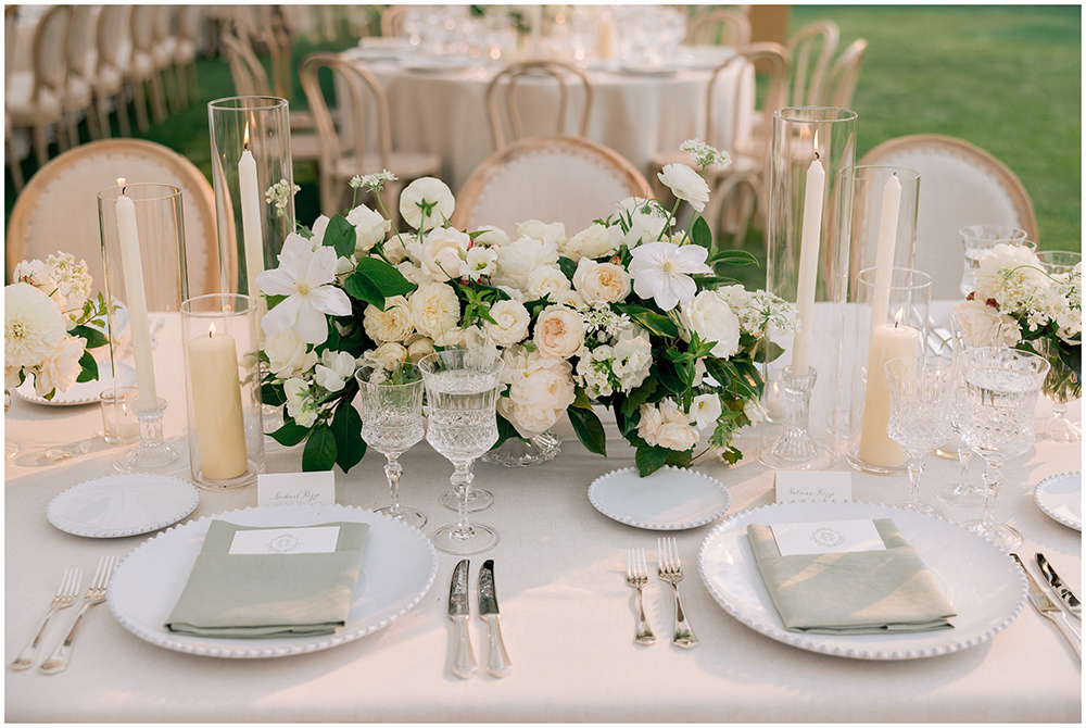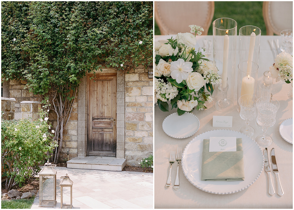 Alexandra K Events curated every detail to honor the couple’s classic, sophisticated style. It also reflected the gorgeous natural surroundings of the California vineyard venue. Soft, romantic tones echoed the venue’s texture and the vineyard views to create a truly special Sunstone Villa wedding. All together, the elevated design elements kept the look timeless and fresh.